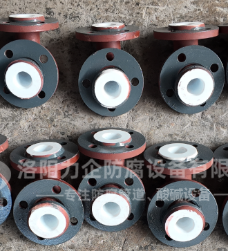? ? ?第一部分、直管部分將等徑值的聚四氟乙烯管道套入鋼管內壁,然后將多余出來的管道四氟翻邊至法蘭密封面處這也就是我們常常說的緊襯工藝。